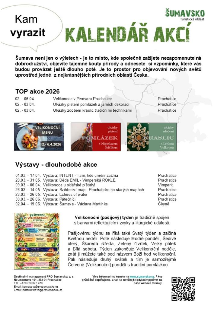 Kalendář akcí Šumavsko 2.4.2026 - 8.4.2026